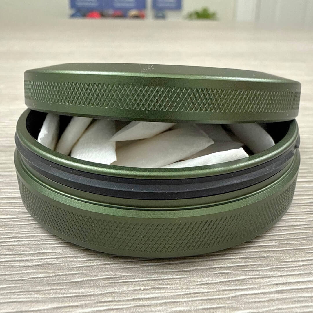Z Caddy's premium silicone seal lets you access your Zyns easily without "lining up the arrows". And it closes tight to keep your lip pillows nice and safe.